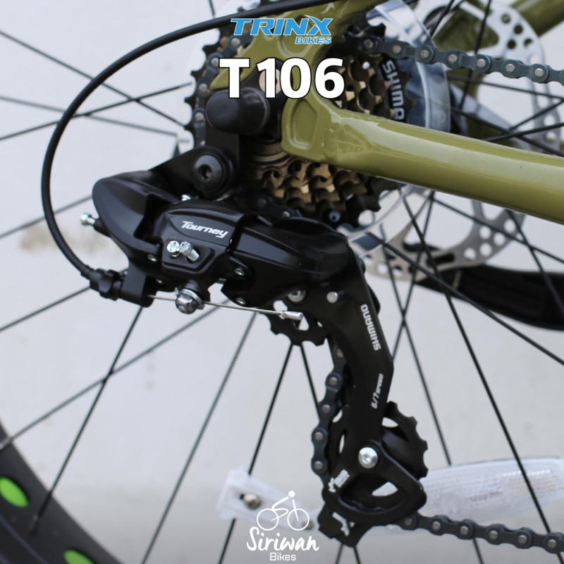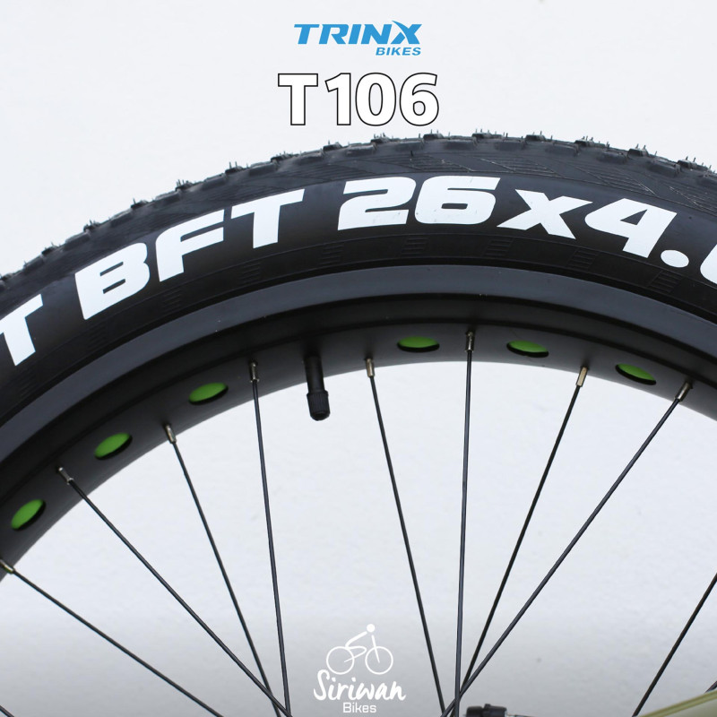 Trinx T106 เป็นจักรยานล้อโต สามารถขับขี่ได้ทุกสภาพถนน ปั่นนุ่มนวล ด้วยยางขนาดใหญ่ที่ช่วยซับแรงกระแทกได้ดี เหมาะกับนักปั่นสายลุย
