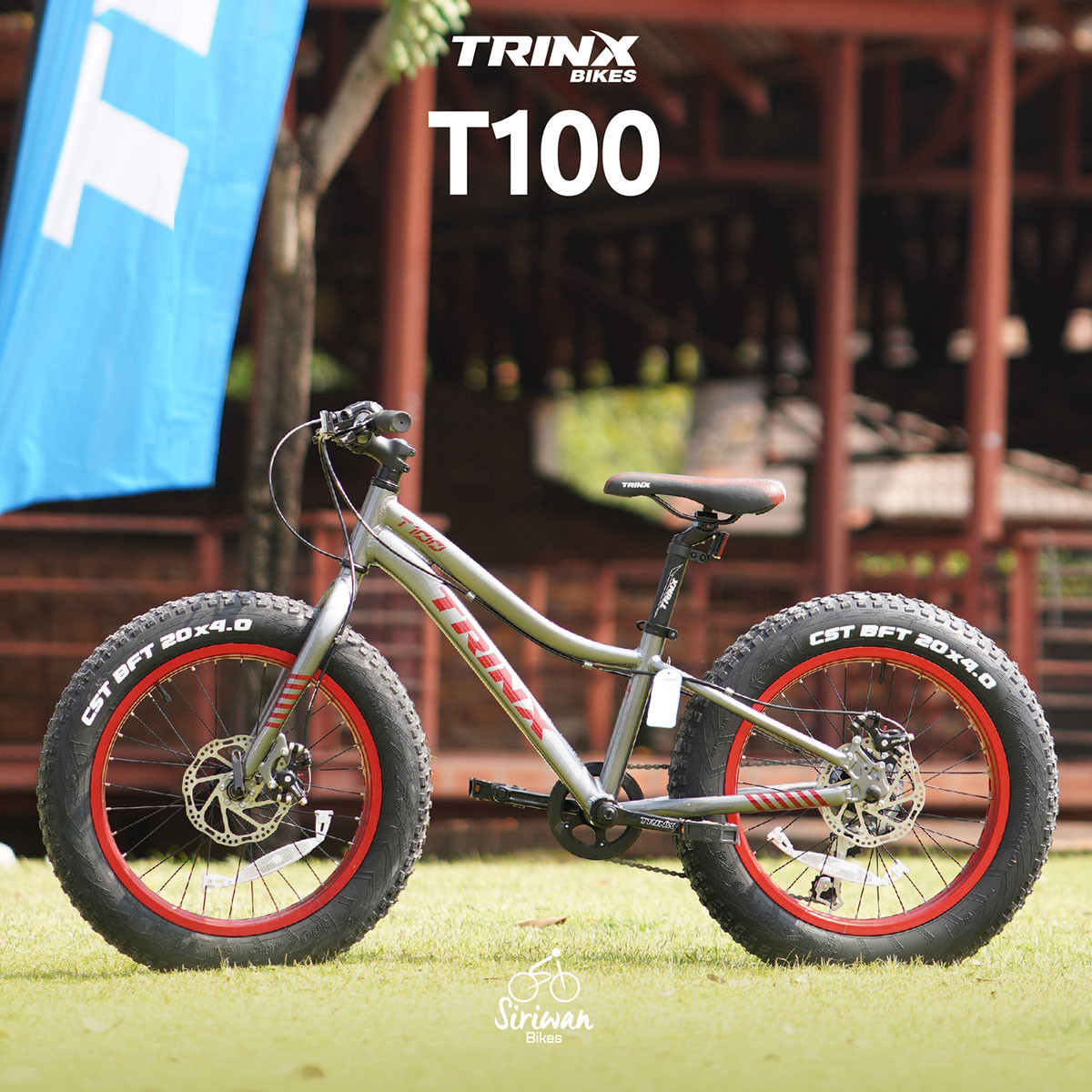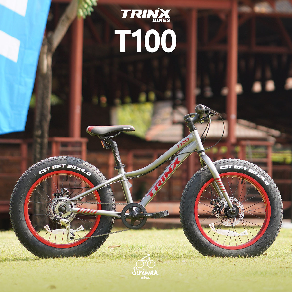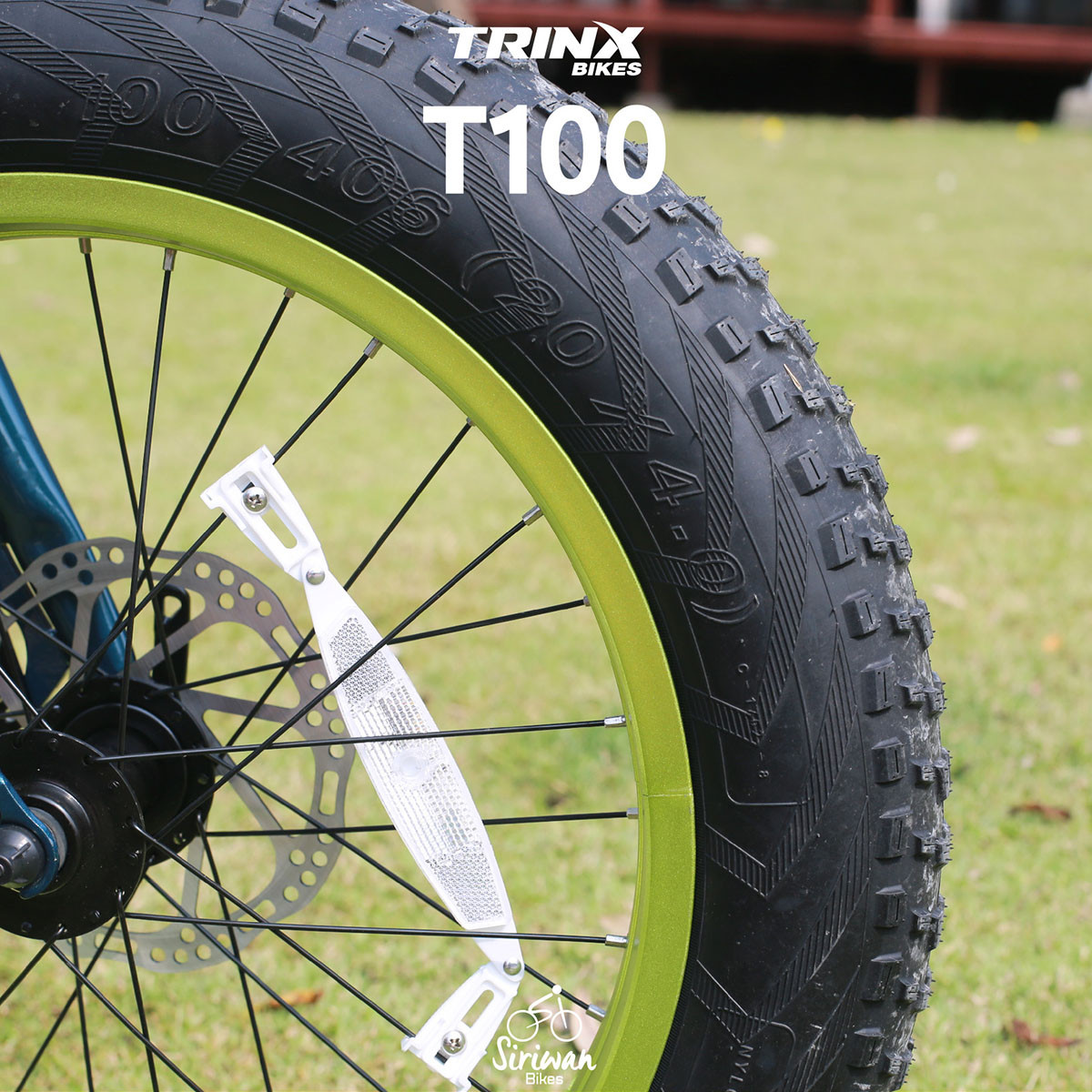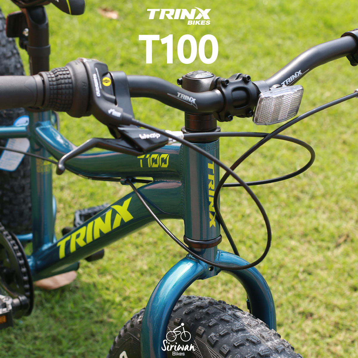 จักรยาน Mini Fatbike ล้อโต Trinx T100 เกียร์ชิมาโน่ 1x7 สปีด เฟรมอลูมิเนียม ล้อ 20x4 นิ้ว เป็นจักรยานล้อโตขนาดเล็ก โดยมีคุณสมบัติเด่นดังนี้