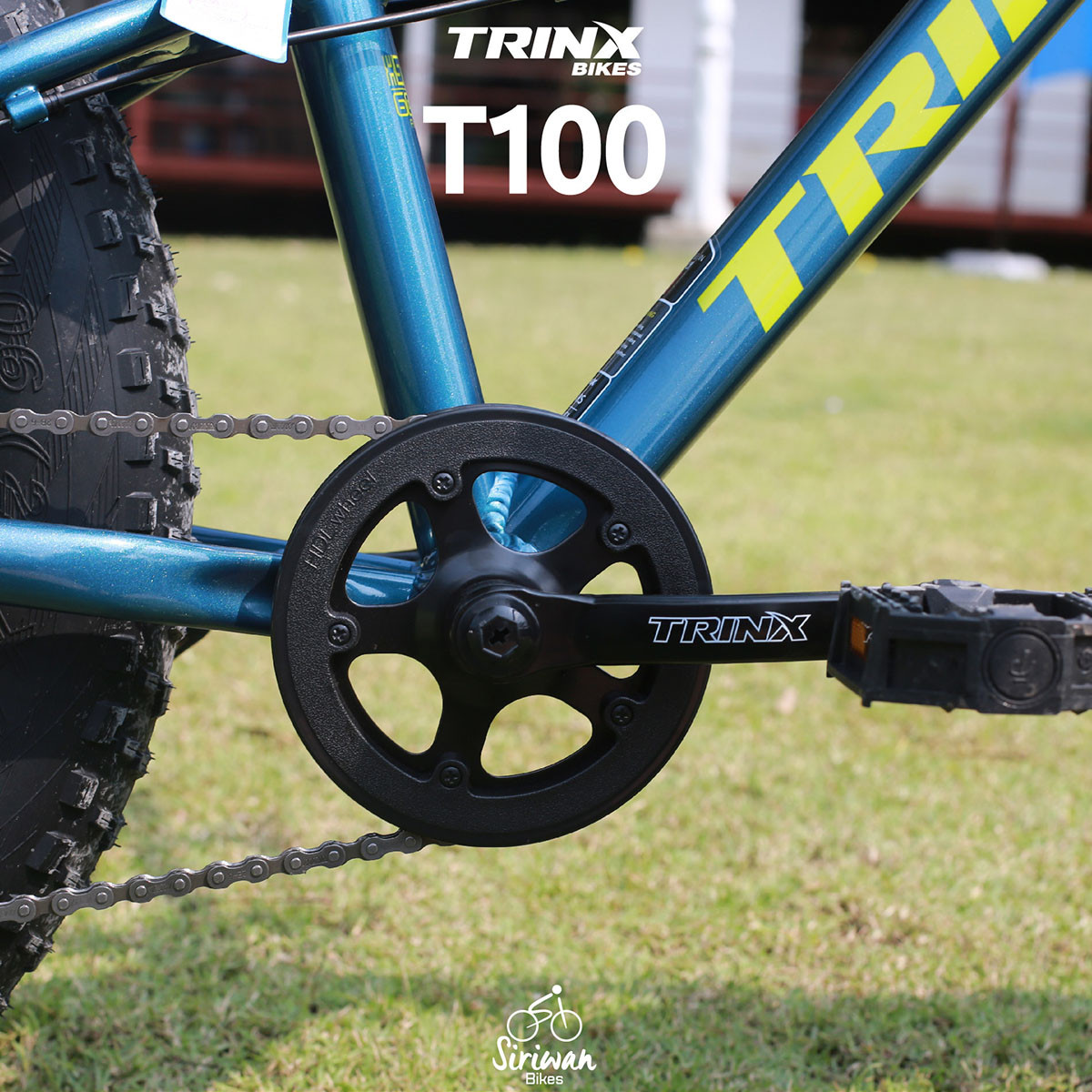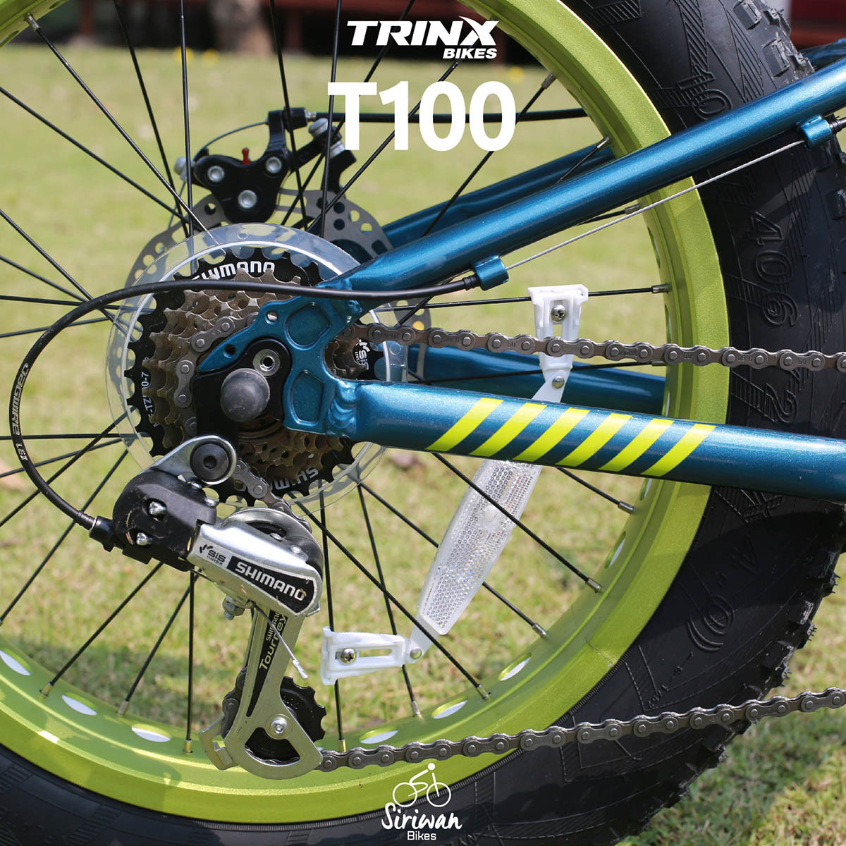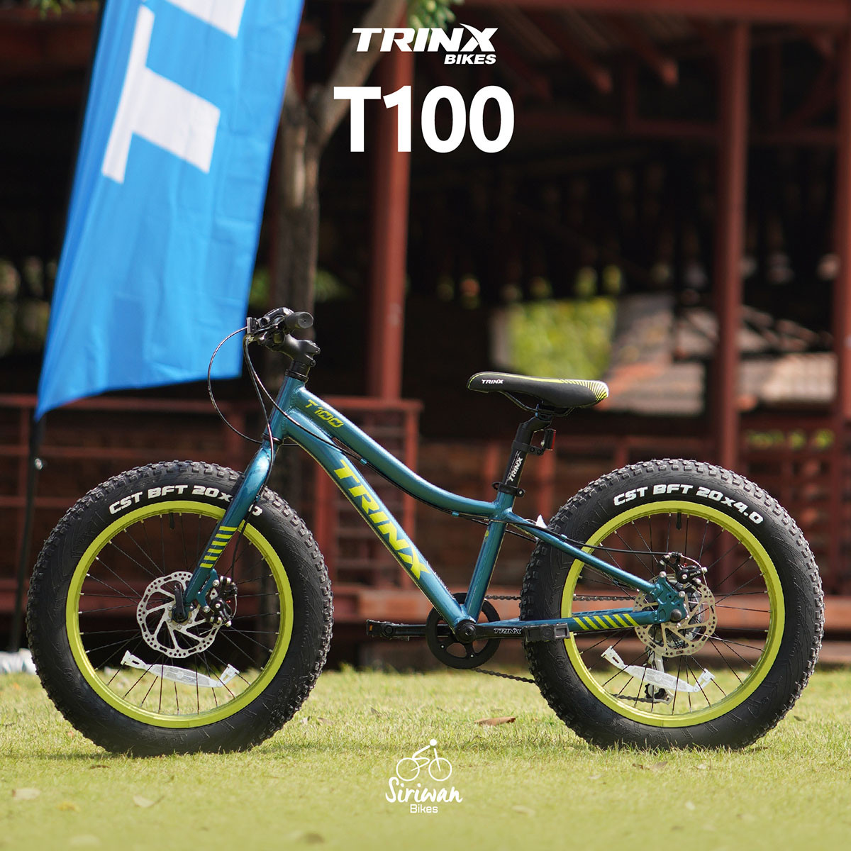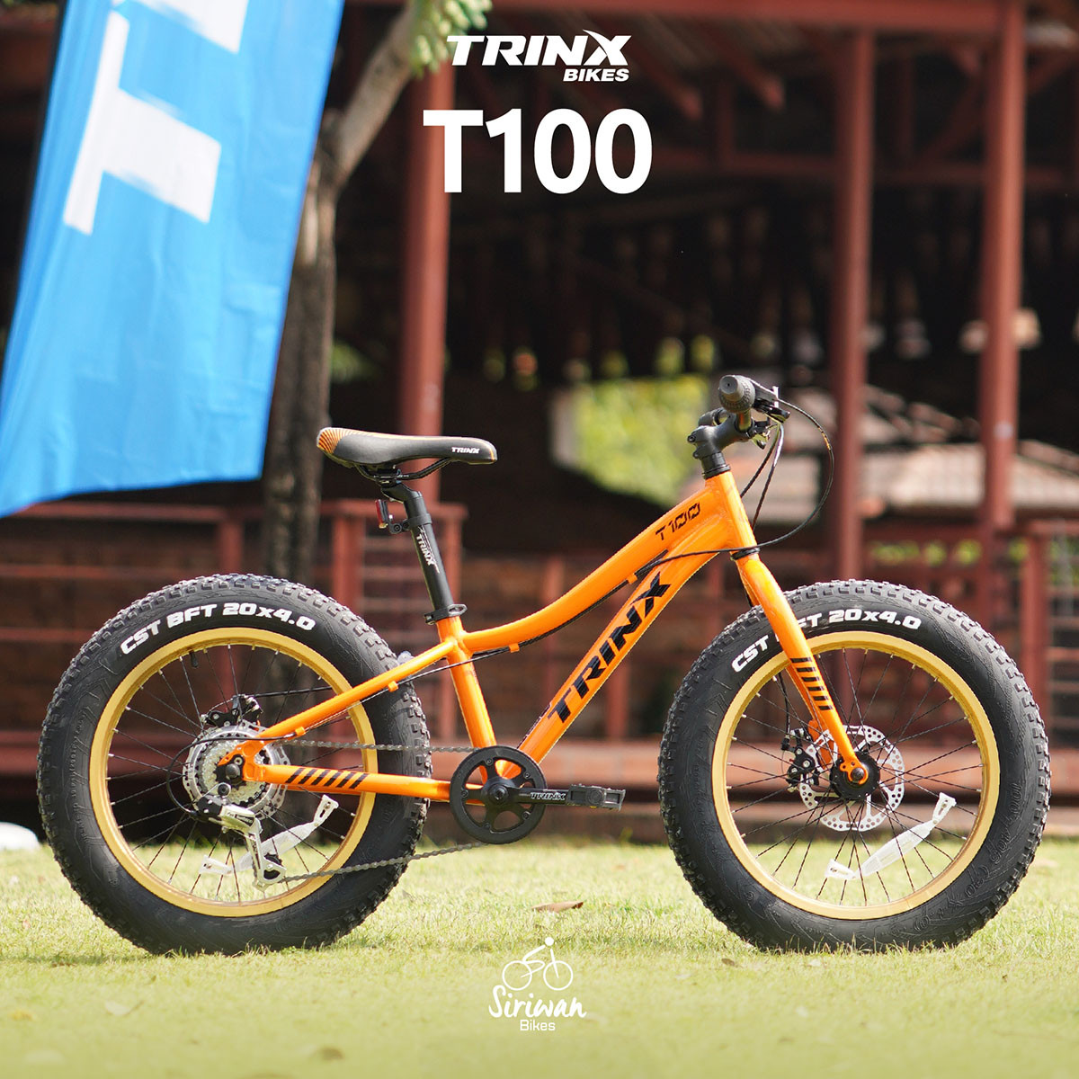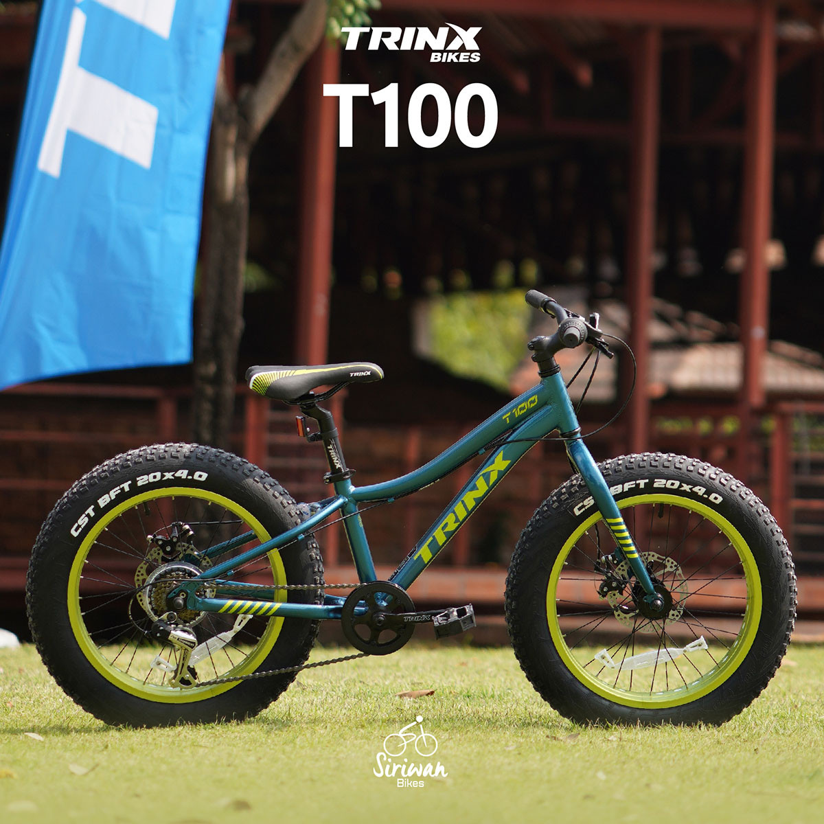 จักรยาน Mini Fatbike ล้อโต Trinx T100 เกียร์ชิมาโน่ 1x7 สปีด เฟรมอลูมิเนียม ล้อ 20x4 นิ้ว เป็นจักรยานล้อโตขนาดเล็ก โดยมีคุณสมบัติเด่นดังนี้