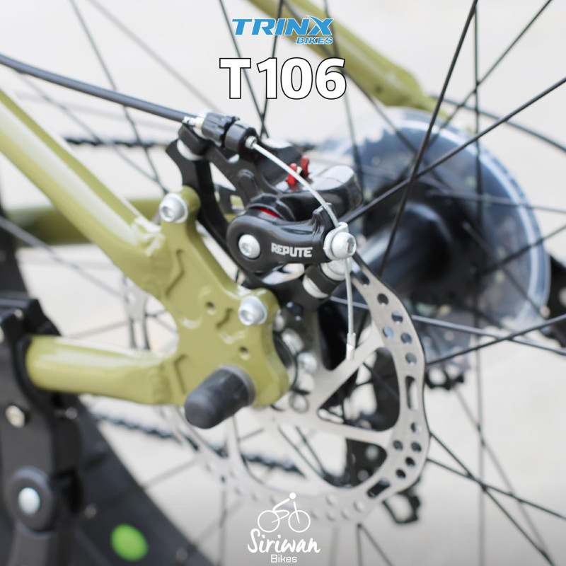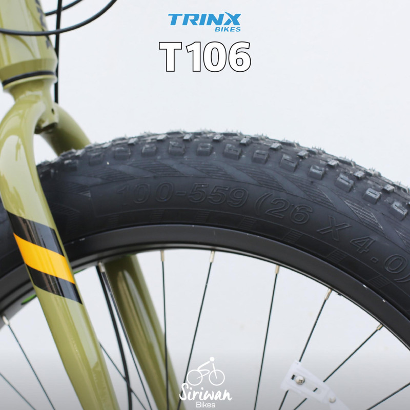 Trinx T106 เป็นจักรยานล้อโต สามารถขับขี่ได้ทุกสภาพถนน ปั่นนุ่มนวล ด้วยยางขนาดใหญ่ที่ช่วยซับแรงกระแทกได้ดี เหมาะกับนักปั่นสายลุย